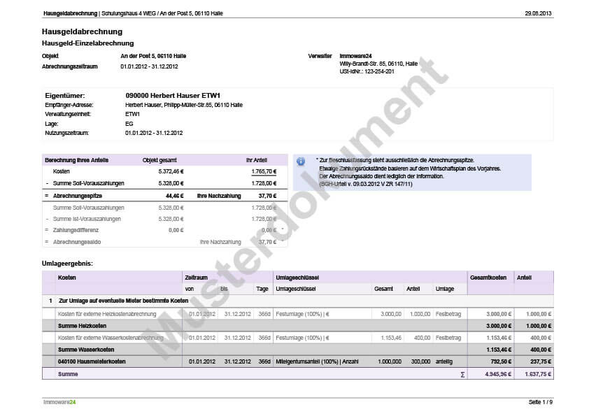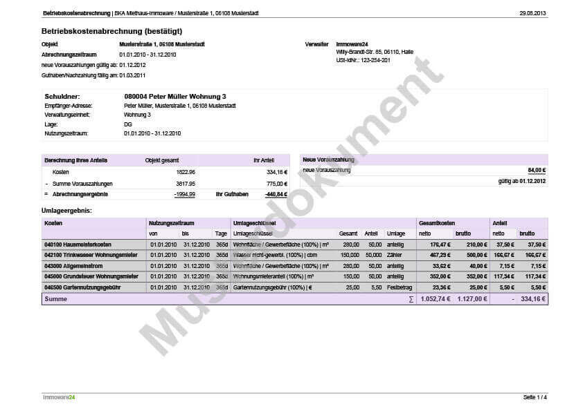 Nebenkostenabrechnung